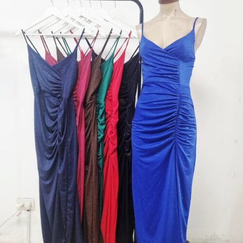 [Reingreso] Vestido largo drapeado microfibra con glitter
