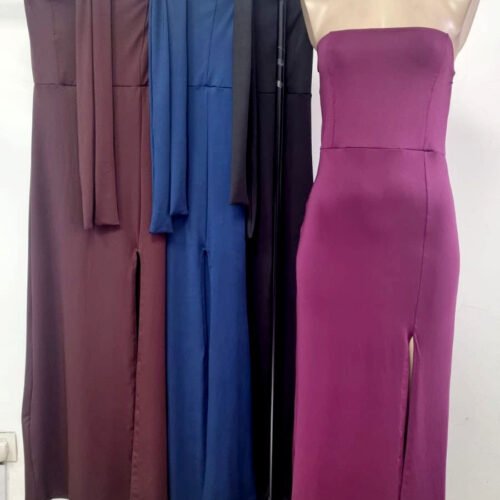 Vestido largo strapless microfibra con corbata