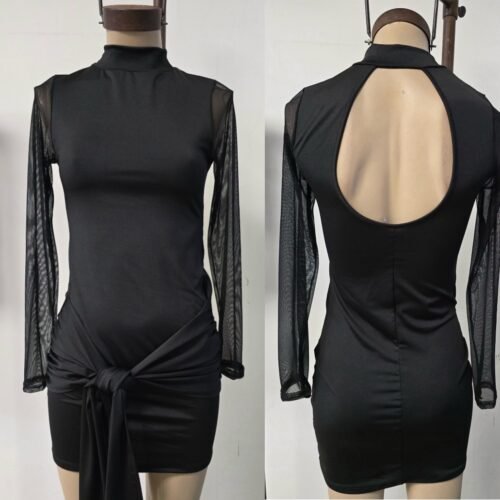 Vestido corto con corbata microfibra