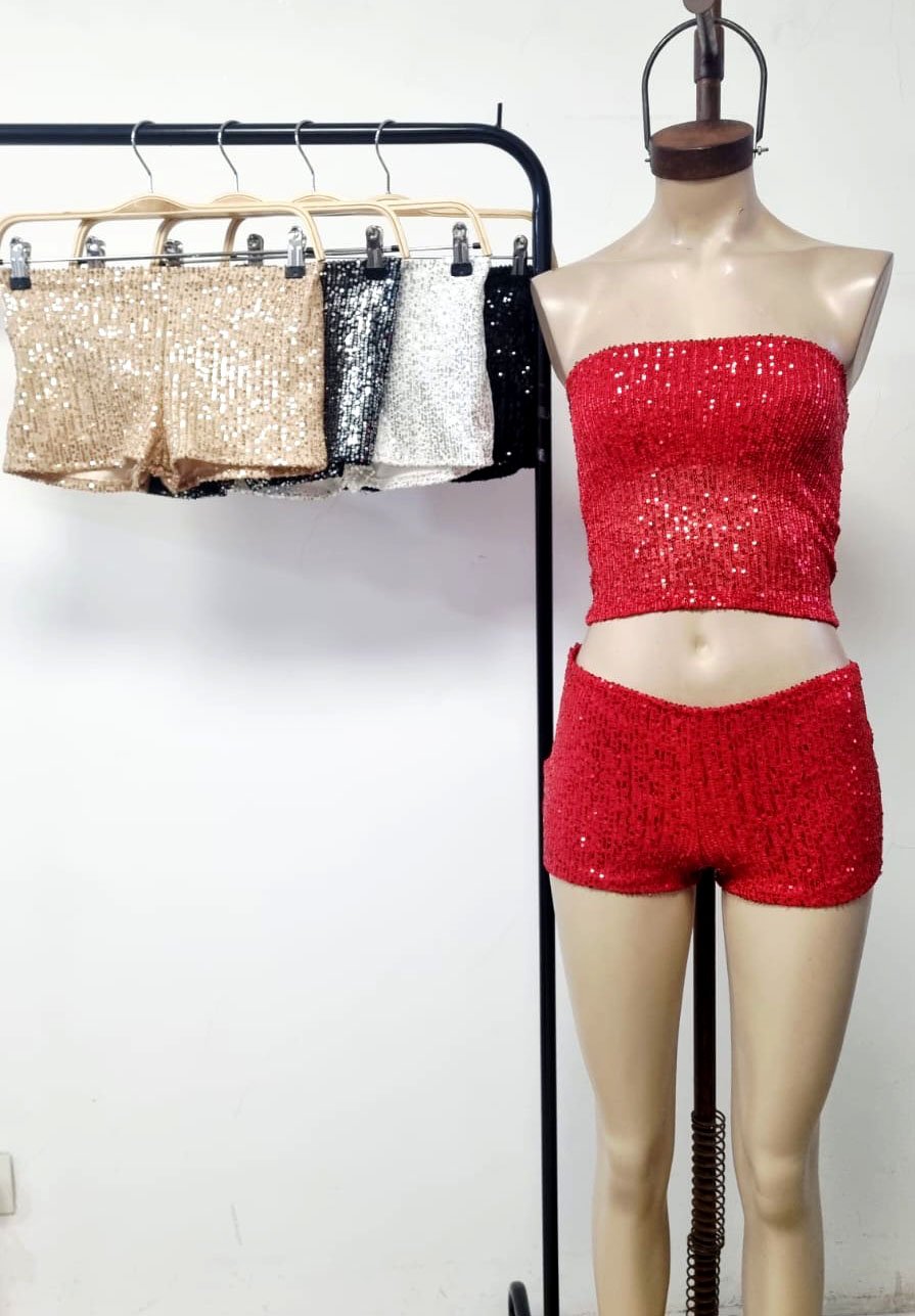 / Short tiro bajo lentejuelas (con cierre)
