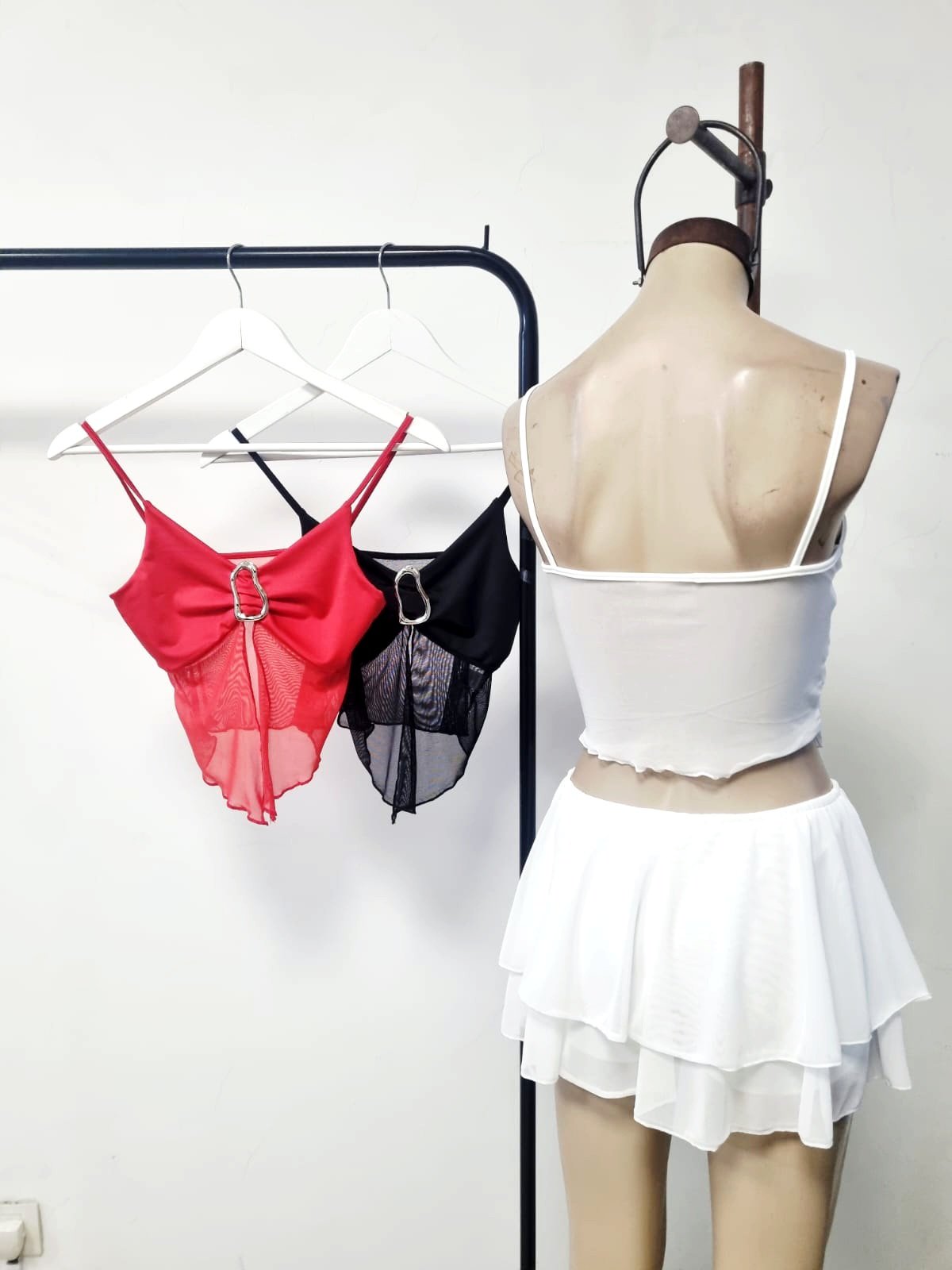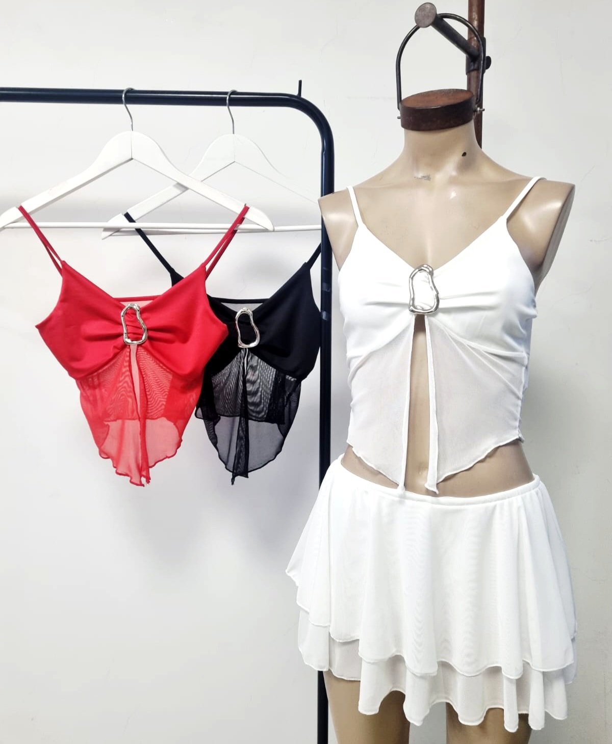 Top hebilla microfibra con tul cantidad
