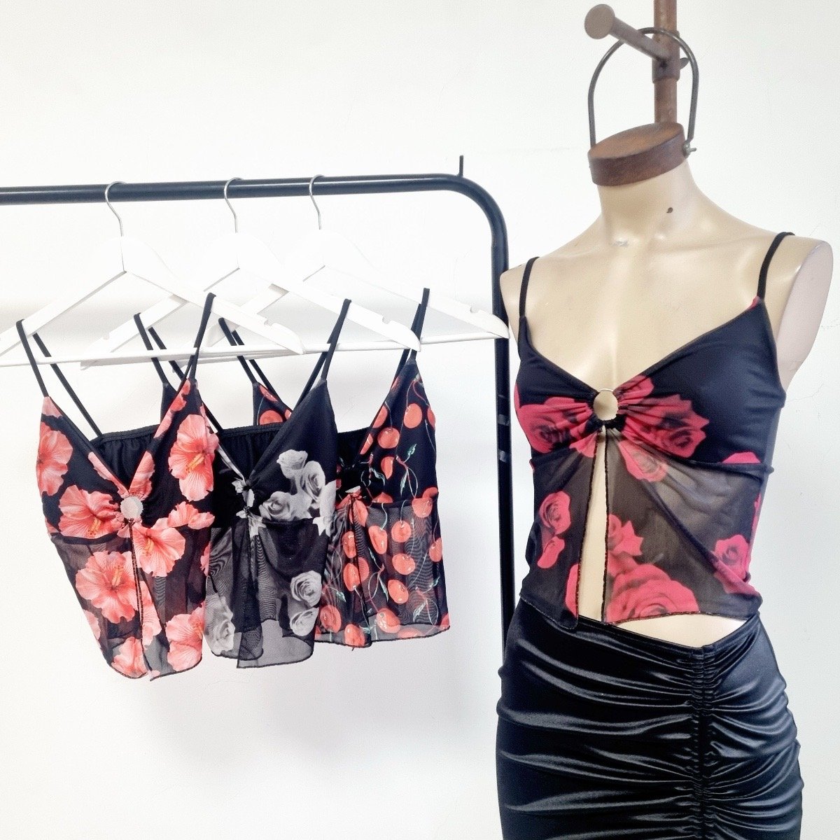 Top tul flores con argolla