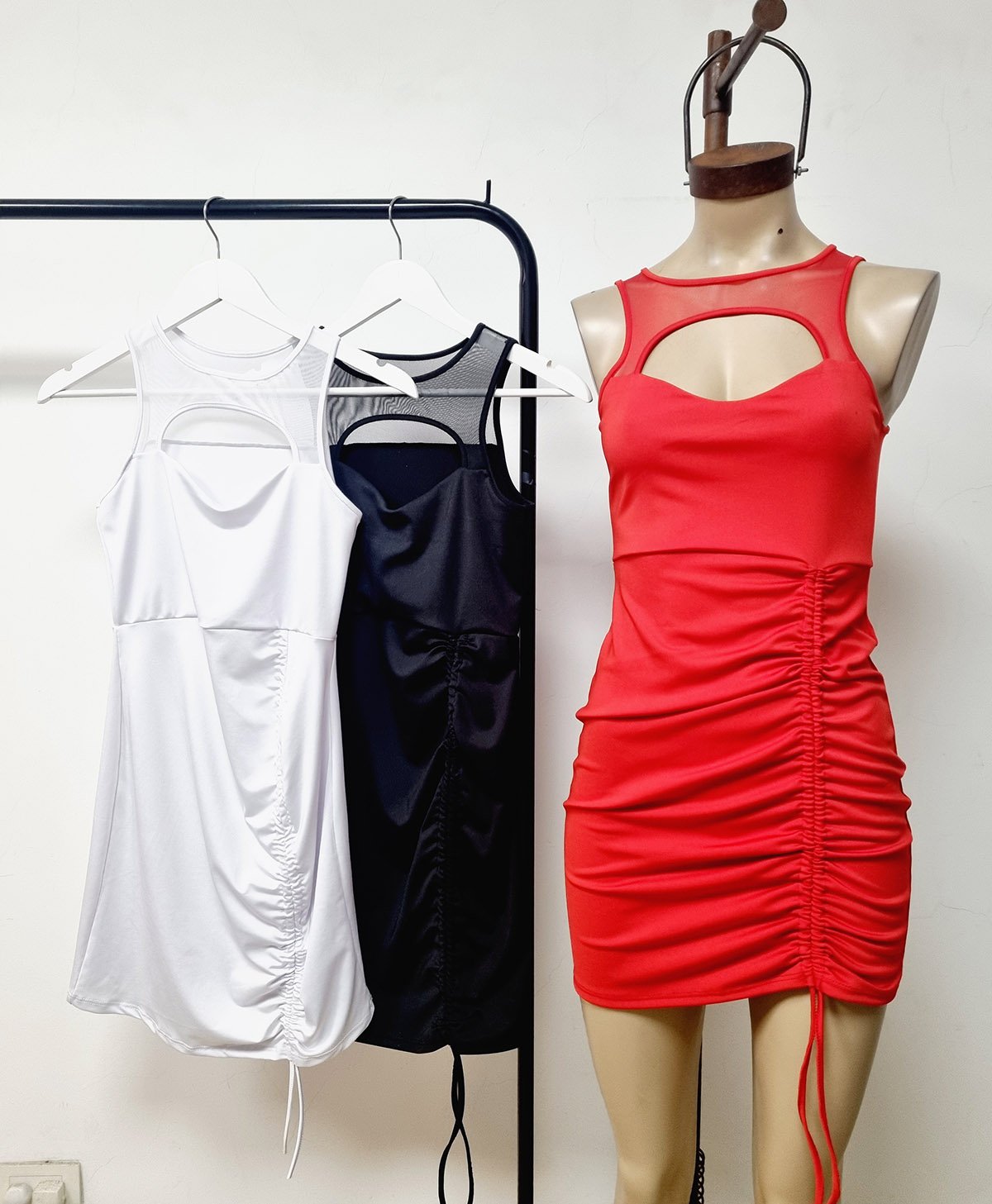 Vestido abertura y frunce sin manga (microfibra con tul) cantidad