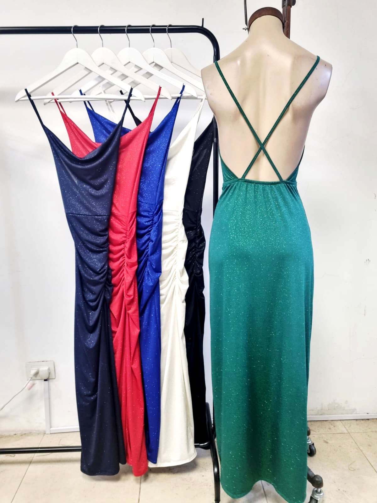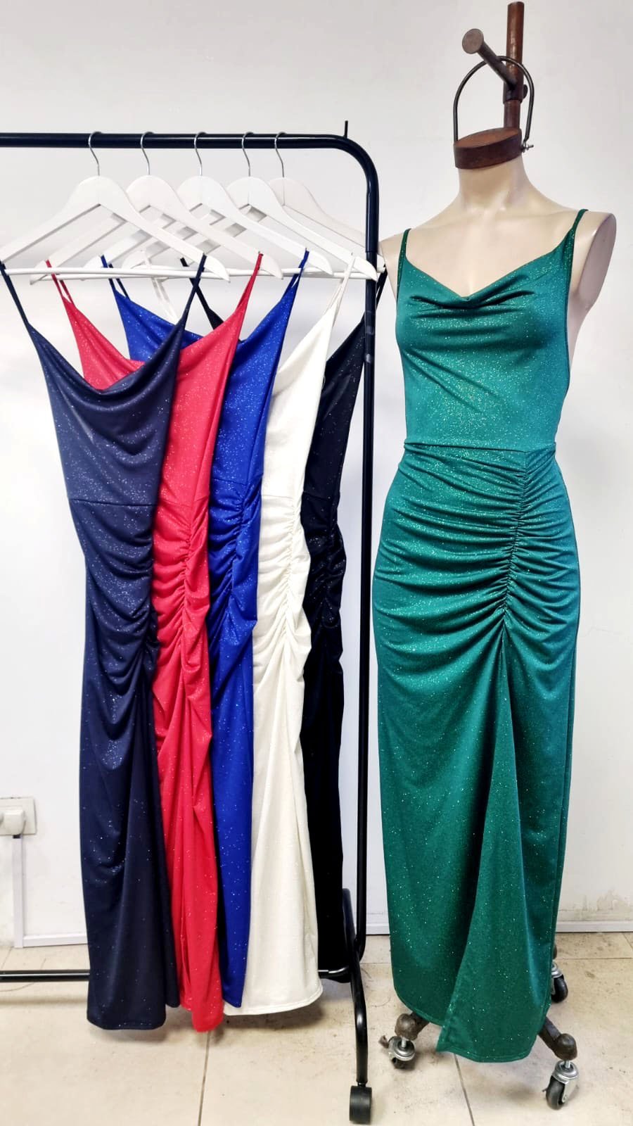[Reingreso] Vestido largo buche y frunce microfibra glitter