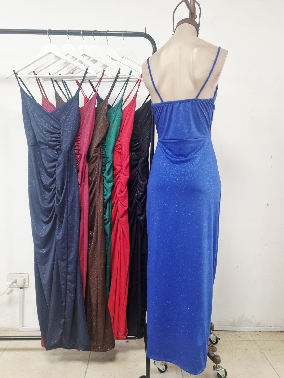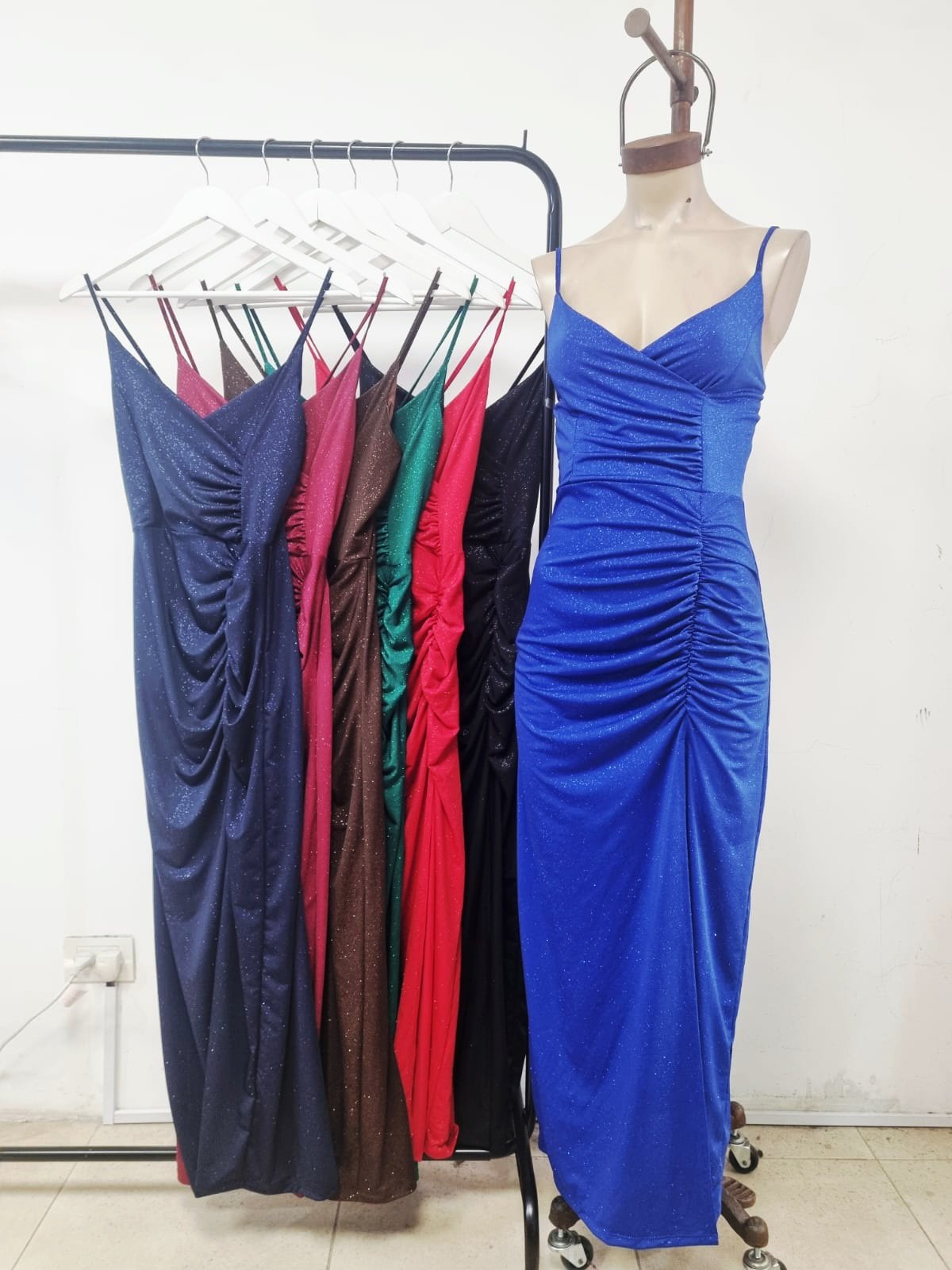 [Reingreso] Vestido largo drapeado microfibra con glitter