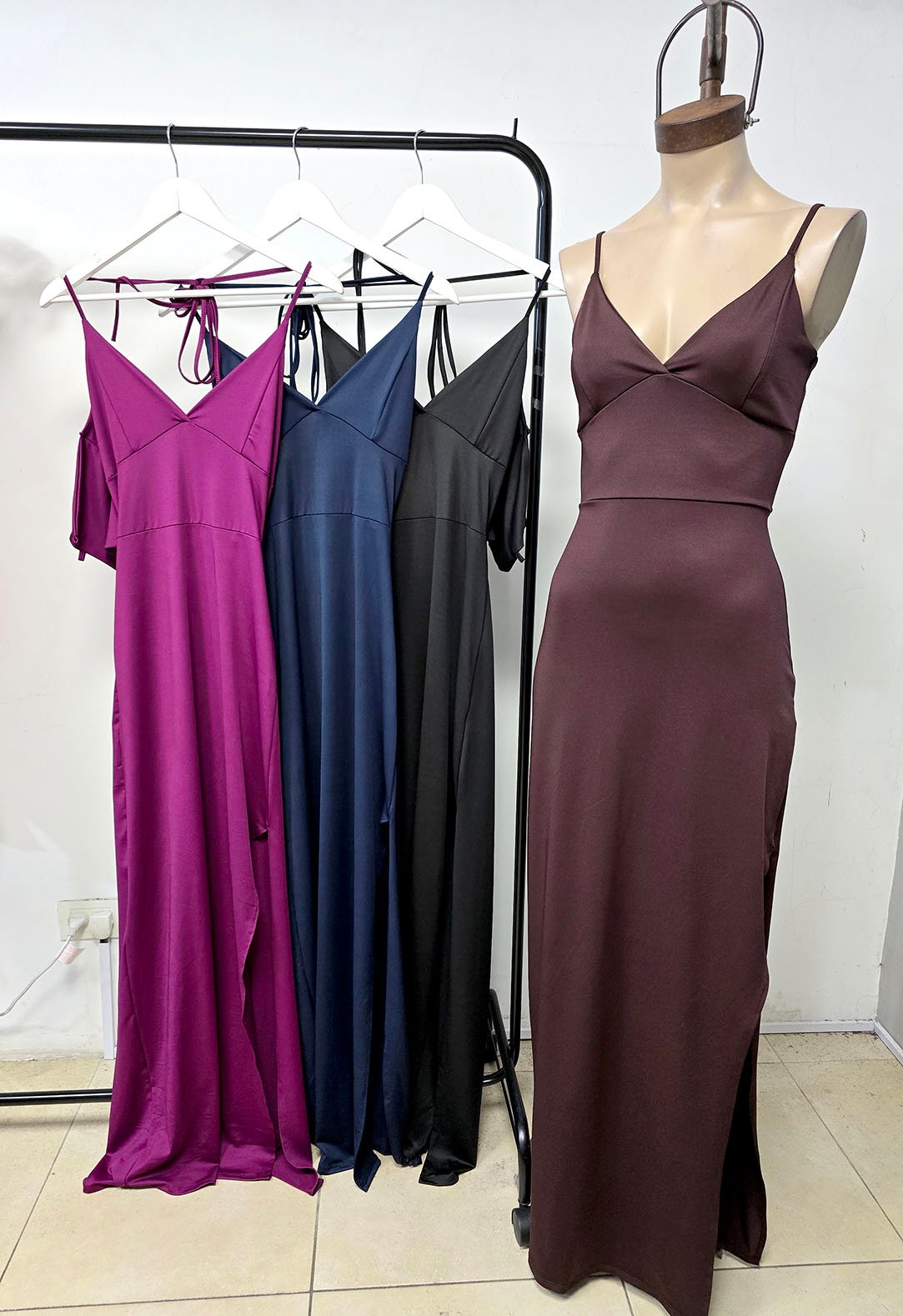 Vestido largo microfibra escote V cantidad