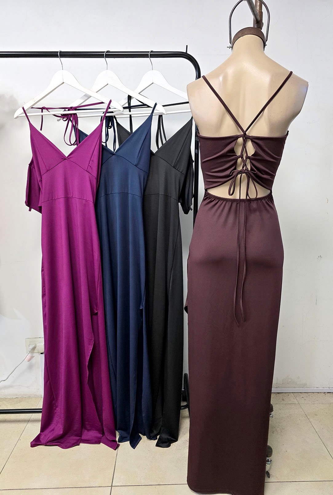 [Reingreso] Vestido largo drapeado microfibra con glitter