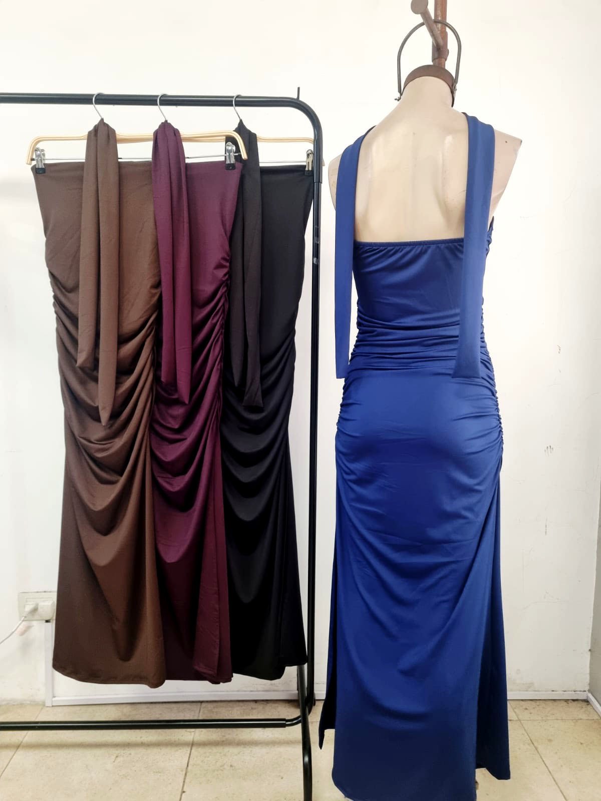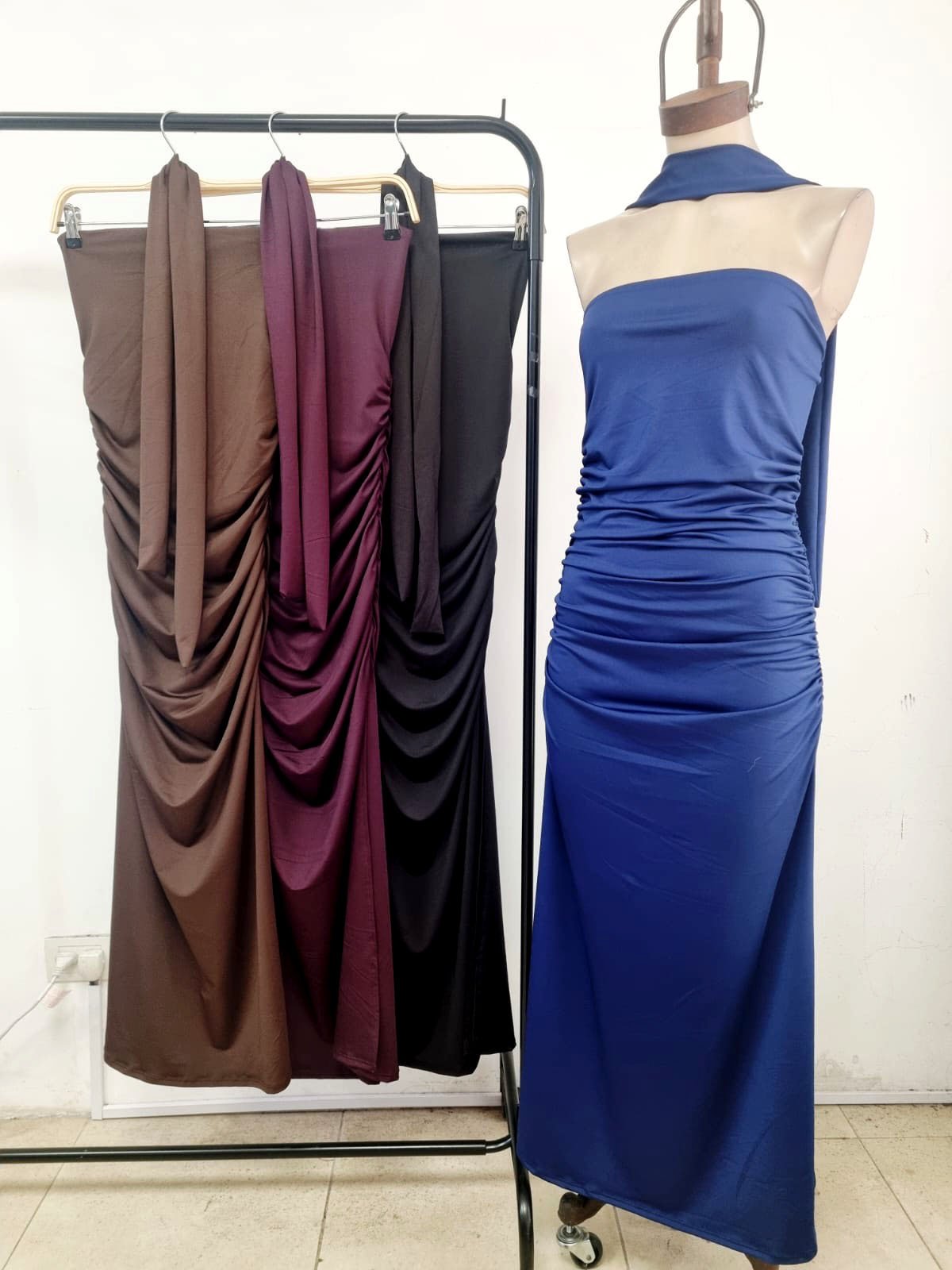 Vestido largo strapless con corbata microfibra