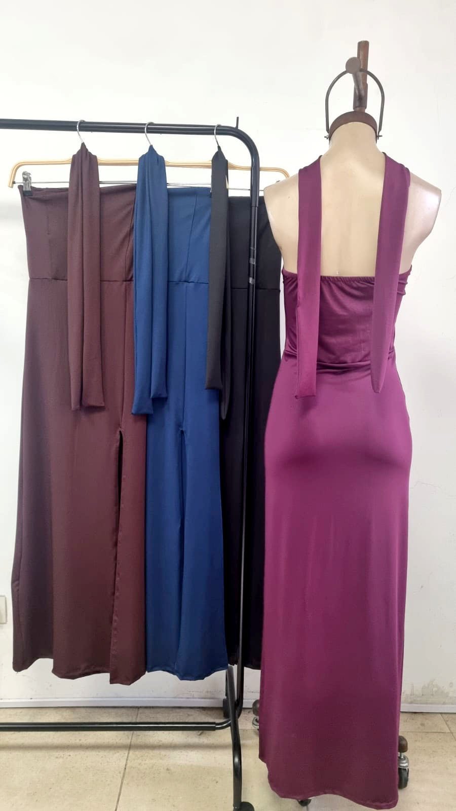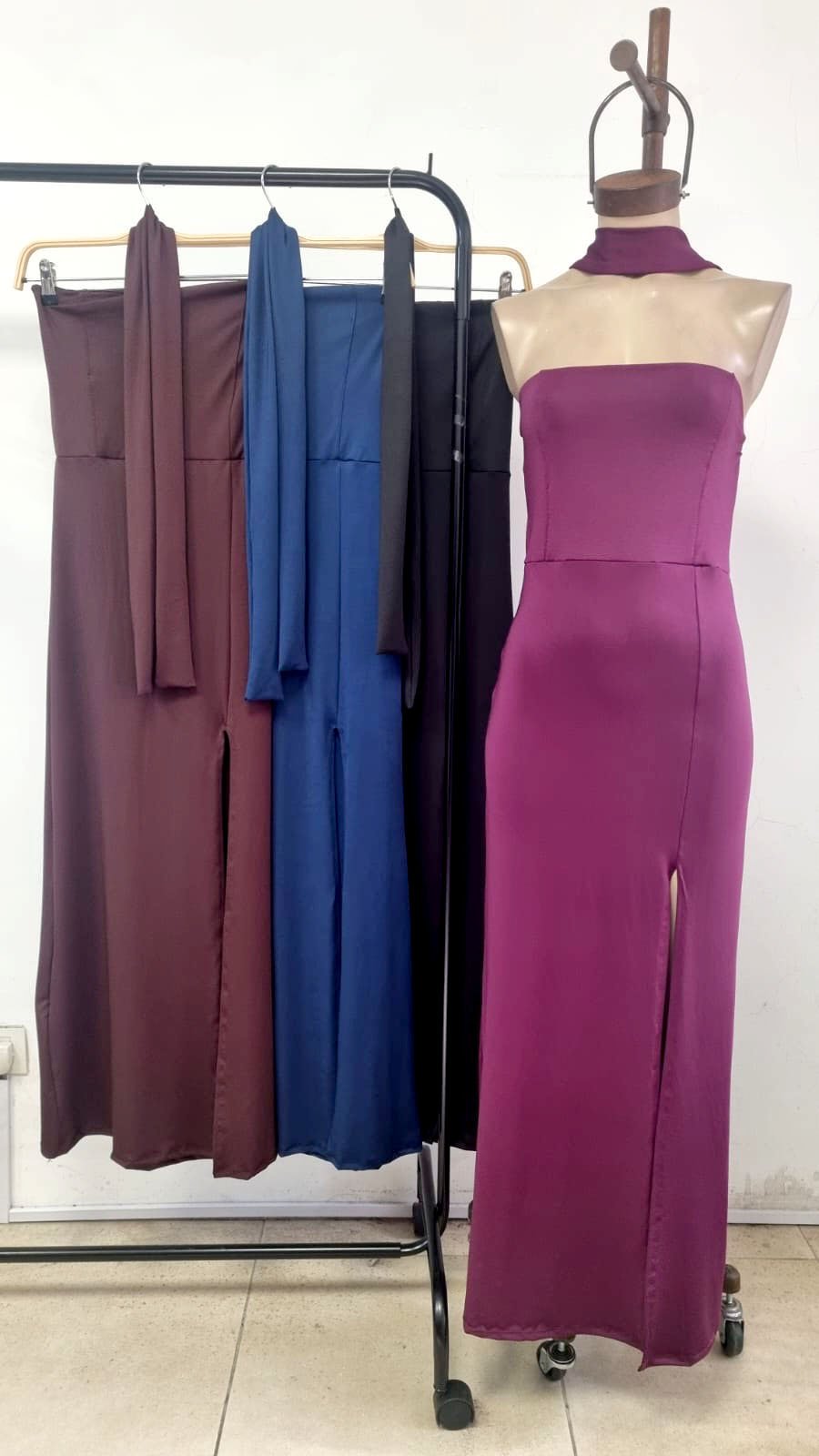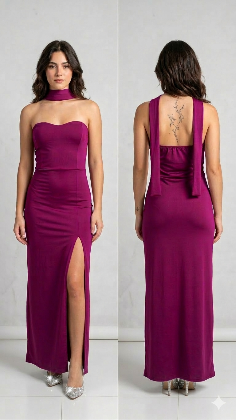 Vestido largo strapless microfibra con corbata
