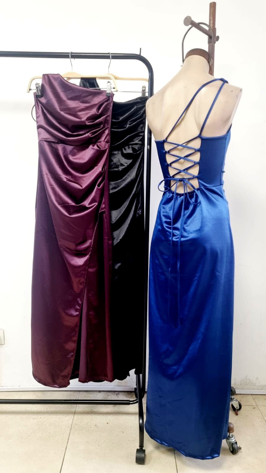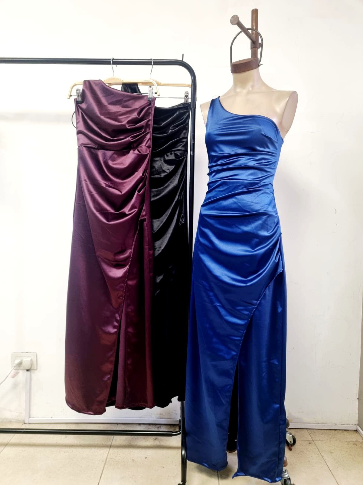 Vestido largo un hombro saten cantidad